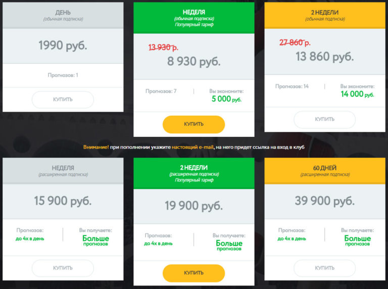 Подписки различаются по срокам и типу прогнозов: