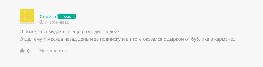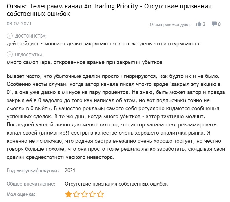 В общей ленте время от времени можно увидеть комментарии от членов закрытого сообщества, в котором размещаются все сигналы. При изучении внешних ресурсов были обнаружены обзоры с плохими оценками и негативные отзывы о проекте АнТрейдинг, иногда содержащие ненормативную лексику.