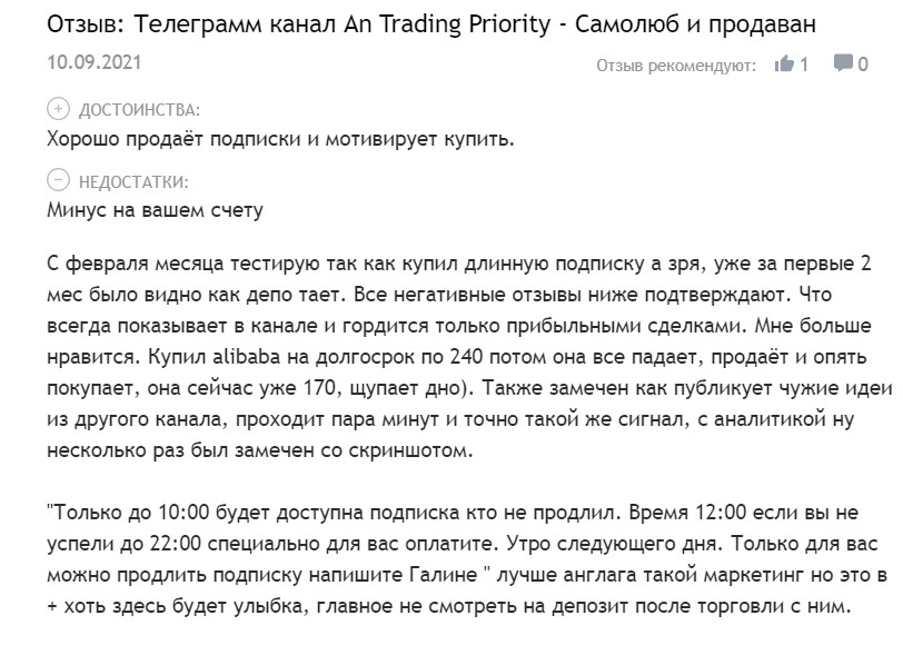 Экспертное мнение! Приобретение подписки antrading priority в Telegram или на сайте может быть рискованным шагом, так как авторы не предоставляют никаких подтверждений своего профессионализма. Кроме того, следует обратить внимание на то, что комментирование постов стало недоступным по неизвестной причине.