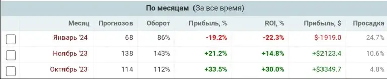 Верификатор используется всего 3 месяца: первые два были прибыльными, текущий — в заметном минусе. Общий доход каппера составляет около 30%, но это не гарантирует таких же результатов для подписчиков, так как не все прогнозы попадают в статистику верификатора. У Taylor Kurazhny четыре варианта платных подписок, но их эффективность неизвестна. Бесплатные прогнозы сопровождаются итогами в тех же постах, что позволяет редактировать записи — сложно понять, не подменялись ли исходные сигналы. Средний коэффициент — около 1.9.