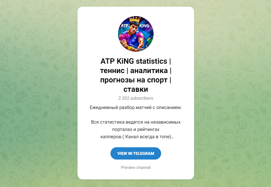 ATP KiNG statistics — Telegram-канал, где каппер Taylor Kurazhny фокусируется на теннисных ставках. Он утверждает, что зарабатывает крупные суммы на прогнозах и предлагает сотрудничество, а также якобы занимает высокие позиции в рейтингах капперов. Но так ли это на самом деле? Мы решили разобраться, что представляет собой этот «гуру» и его проект.