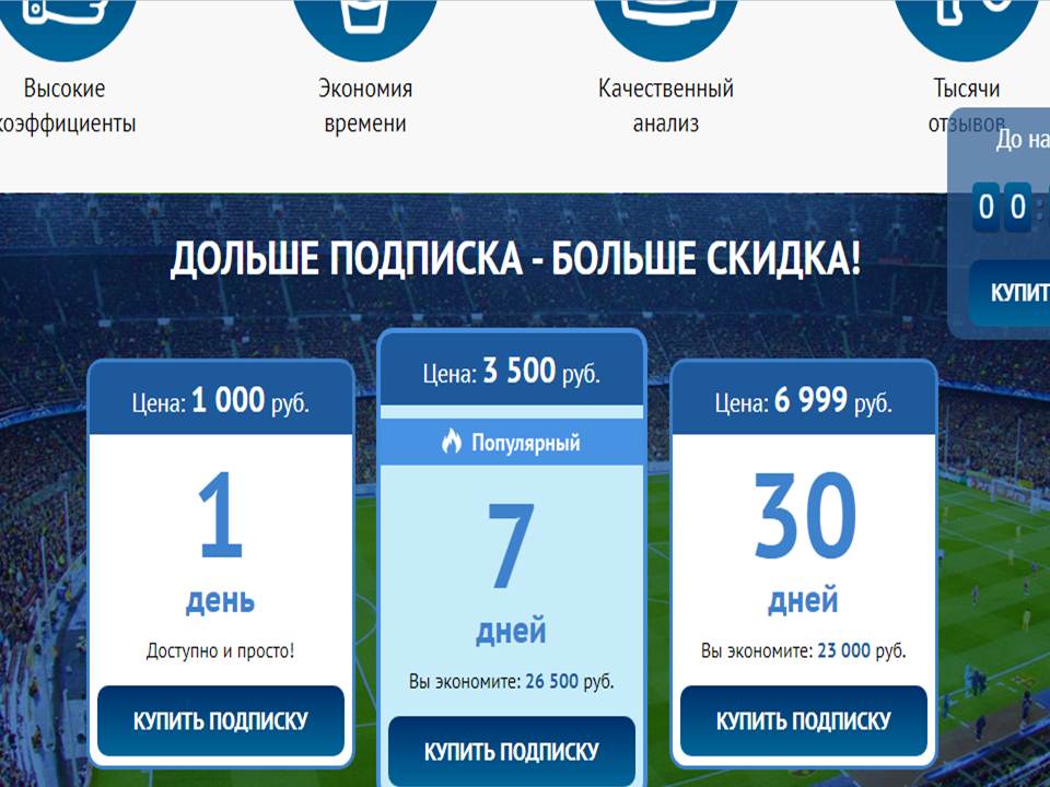 Условия сотрудничества подробно не расписаны. Чтобы получить прогноз, нужно купить подписку на 1 день, 7 дней или 30 дней. Для этого требуется регистрация с указанием: