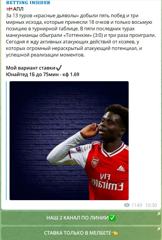 На канале Betting Insider в Telegram подписчики имеют возможность получать бесплатные ставки с выгодными коэффициентами, сопровождаемые краткими разъяснениями по каждому выбору.