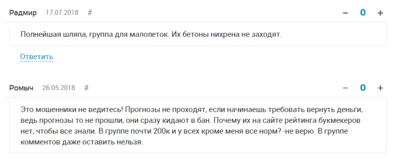 Те, кто пробовал бесплатные прогнозы или покупал подписку, оставляют разгромные отзывы. Bull Bet обвиняют в мошенничестве, подтасовке данных и откровенном обмане, который ведёт к сливу денег через подписки и неудачные ставки.