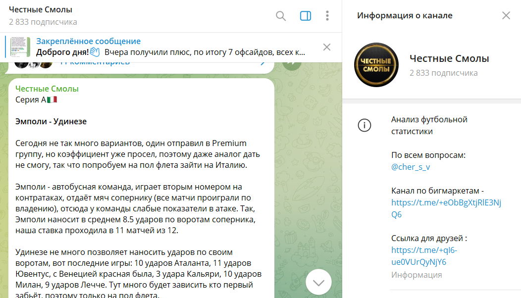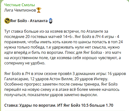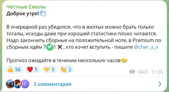 Прогнозы в Telegram-канале Честные смолы