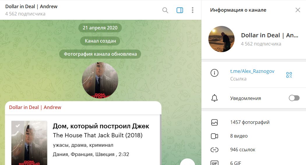 Информация о Telegram-канале Dollar in Deal, который курирует Андрей