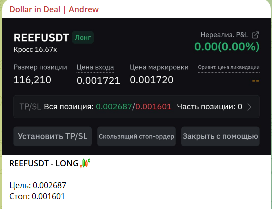 Сигнал без оплаты в телеграм-канале Dollar in Deal