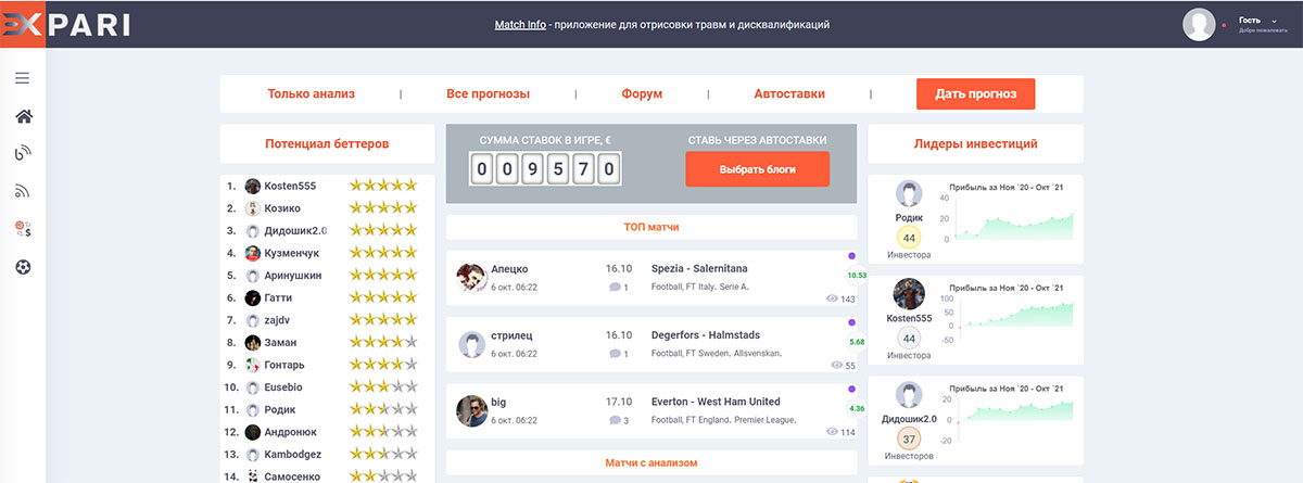 На Expari доступна детальная статистика каждого аналитика. При клике на профиль открывается отчетность за весь период или выбранный интервал: число прогнозов, прибыль, UDI и ROI. Этого достаточно, чтобы выбрать каппера под свои цели и бюджет. Огромный плюс — функция автоставок, превращающая доход в пассивный. Честность статистики сомнений не вызывает: обман привел бы к уходу пользователей, что невыгодно администрации.