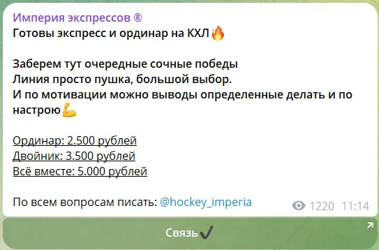При анализе проектов о ставках важно учитывать множество факторов, чтобы не попасть на мошенников: открытость статистики, реальная проходимость и доходность, стратегия игры, отзывы в сети и т.д. Даже верификация на специализированных сайтах сегодня не всегда гарантирует честность. Telegram-канал «Империя экспрессов» нельзя считать даже источником полезной информации: бесплатные прогнозы украдены, а платные экспрессы ориентированы на новичков и ведут к неизбежным убыткам.