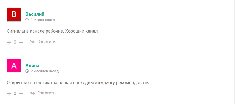 В сообществе нет отзывов от участников. При анализе тематических сайтов и форумов можно наткнуться на несколько нейтральных позитивных мнений, где пользователи в основном делятся положительными впечатлениями и подтверждают, что отчеты соответствуют реальности, а сигналы действительно приносят прибыль.