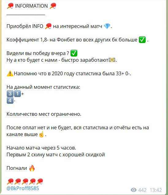 На Телеграм-канале «Культура Беттинга» отсутствуют возможности для долгосрочных подписок. Тем не менее, Алекс регулярно публикует инсайдерские данные, подчеркивая, что это не просто ставки на беттинг, а прогнозы, основанные на сведениях от загадочного источника.