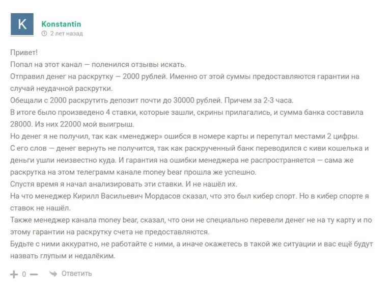 Канал с отзывами: t.me/moneybear_reviews