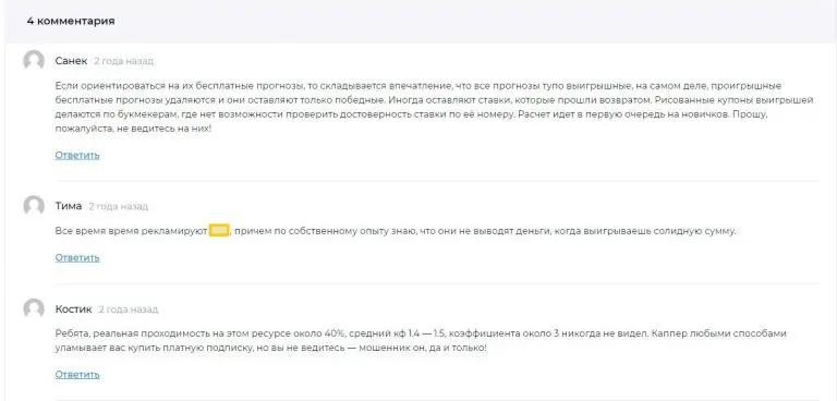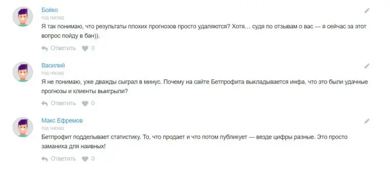 В группе ВК (почти заброшенной) и Telegram-канале периодически выкладывают переписки с подписчиками, выигравшими по купленным экспрессам. Однако такие примеры не всегда правдивы. На сторонних сайтах 90% обзоров негативные, а в комментариях пользователи обвиняют проект в обмане.