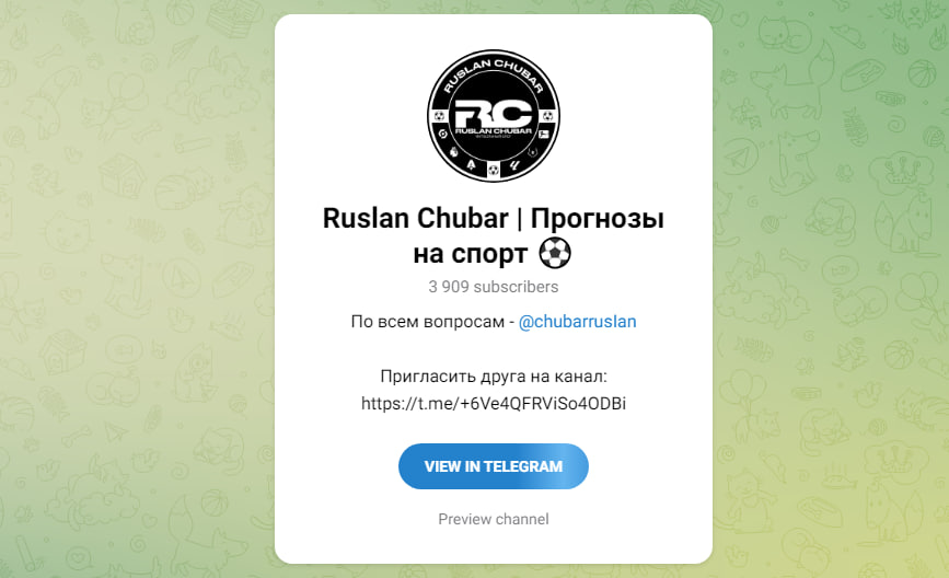 Описание Telegram-канала «Ruslan Chubar | Прогнозы на спорт»