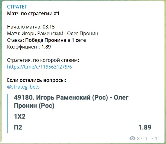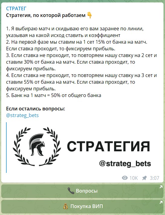 Прогнозы на ставки без оплаты в телеграм-канале Стратег