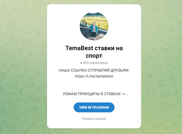 Портал, посвященный ставкам, создан в 2016 году. Его основатель и главный аналитик — Артем Ванютин. Активность сосредоточена в соцсетях. На YouTube-канале (66 тыс. подписчиков) публикуются бесплатные разборы популярных футбольных и хоккейных матчей. В Telegram-канале Tema__Best — 8,2 тыс. участников, плюс есть чат на 700 человек. Группа ВК насчитывает 25 тыс. подписчиков. Где возможно, комментарии открыты. На 26 января 2022 года платных услуг нет — только бесплатные прогнозы.