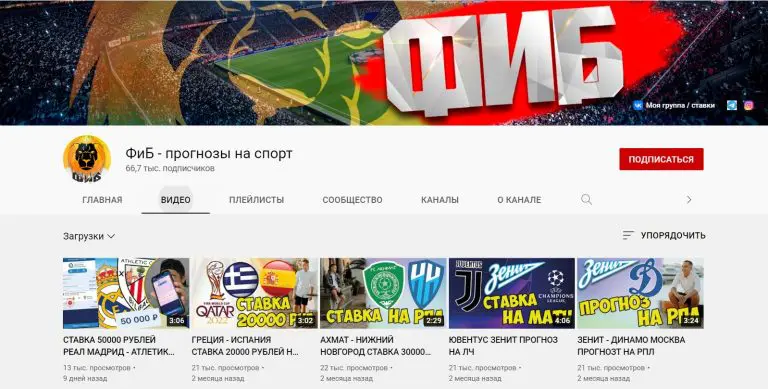 YouTube: youtube.com/c/ФиБпрогнозынаспорт/about