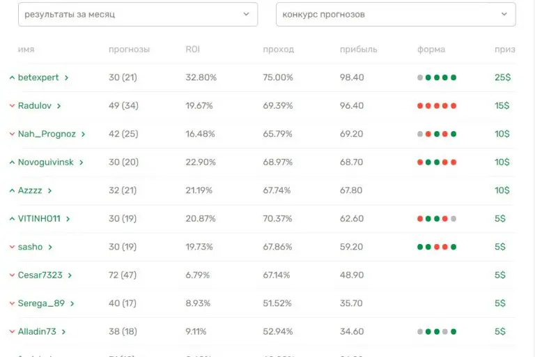 Для капперов проводят ежемесячные состязания: общий зачёт, экспрессы, прогнозы на редкие лиги. Итоги доступны в специальном разделе.