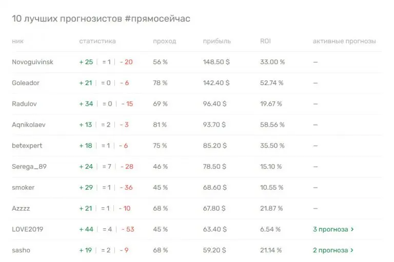 По каждому аналитику ведётся прозрачный учёт: плюсы, минусы, возвраты, ROI, средняя проходимость и кэф. В топ-10 на сегодня четверо играют в минус на дистанции, а лучший ROI — 12%. Это говорит о честности: проигрыши не скрывают, что редкость для подобных проектов.